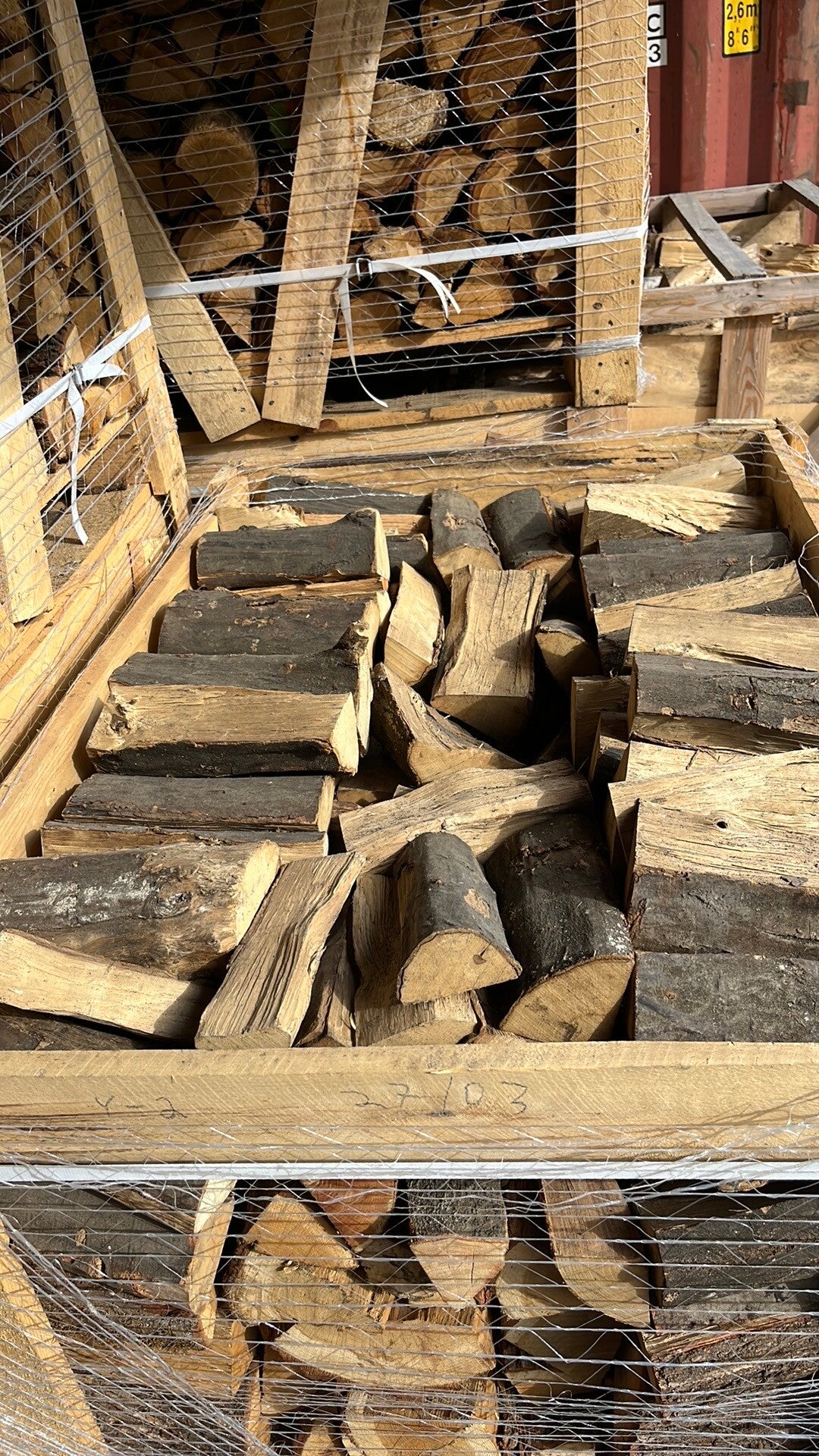 Het hout wordt zorgvuldig ovengedroogd, waardoor het vochtgehalte aanzienlijk lager is dan bij luchtgedroogd hout (ca. 13%). Dit zorgt voor een snelle ontbranding, hoge energiewaarde en minimale rookontwikkeling. De buitenmaat van de kratten zijn: 120x85x120cm (LxBxH).